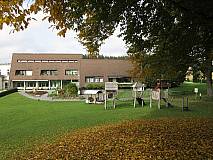 Zum Zentrum gehört ein großer Parkplatz, auch für Busse geeignet, außerdem ein Spielplatz mit weiträumigen Grünflächen und Grillmöglichkeit.